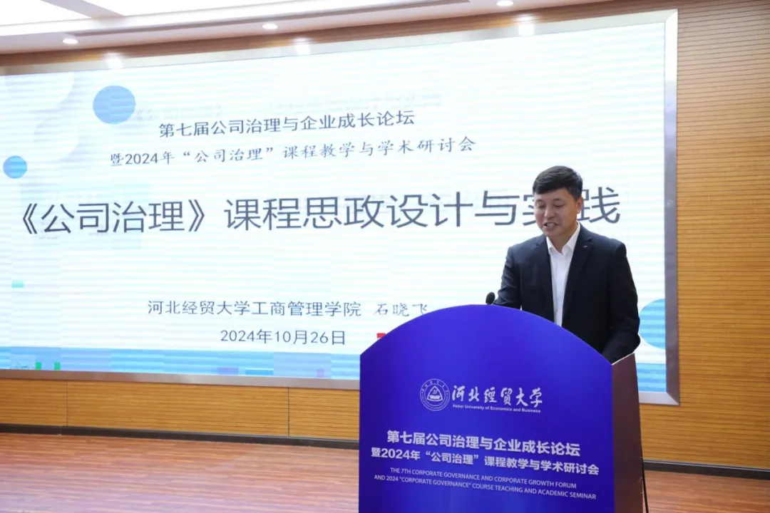 伟德bv国际体育副经理、公司治理与企业成长研究中心主任石晓飞教授作题为“《公司治理》课程思政设计与实践”的主题报告。报告详细阐述了如何依据课程特点、员工需求和社会需求来设定课程思政目标,并展示了将这些目标转化为具体教学内容的具体实现路径和课程思政建设成效,并举例说明。