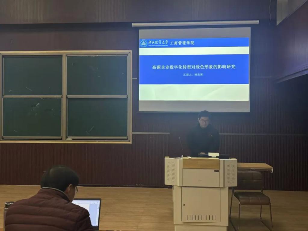 汇报人杨宏博以“高碳企业数字化转型对绿色形象的影响研究”为题,从研究背景、研究假设、研究设计、实证结果、创新与不足五个部分展开汇报。以高碳企业为研究样本,基于信号理论考察了数字化转型对高碳企业绿色形象构建的影响,为高碳企业进一步明晰绿色形象的构建路径提供了实证依据。