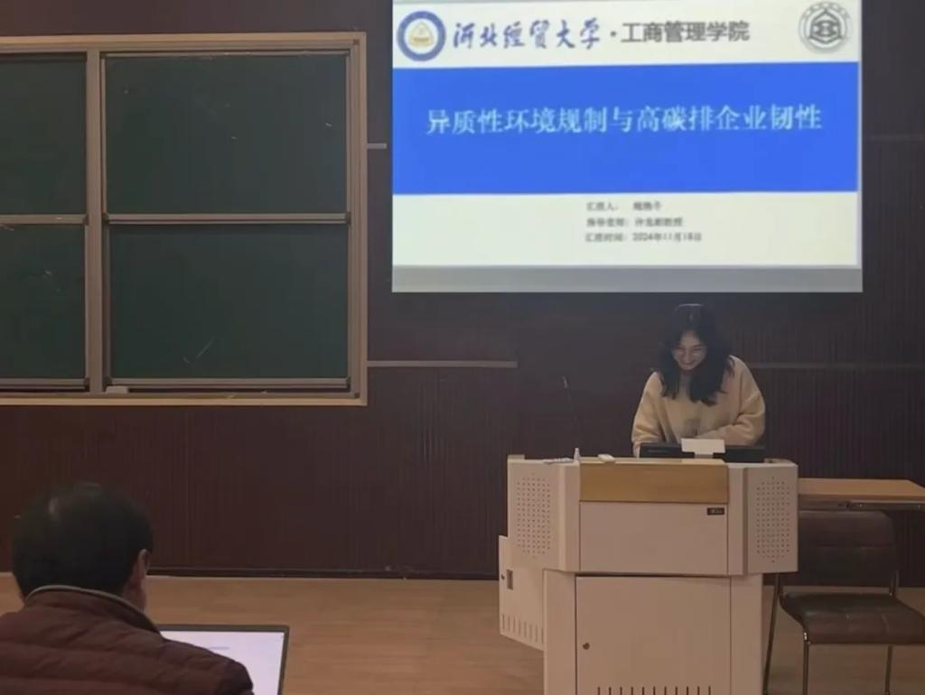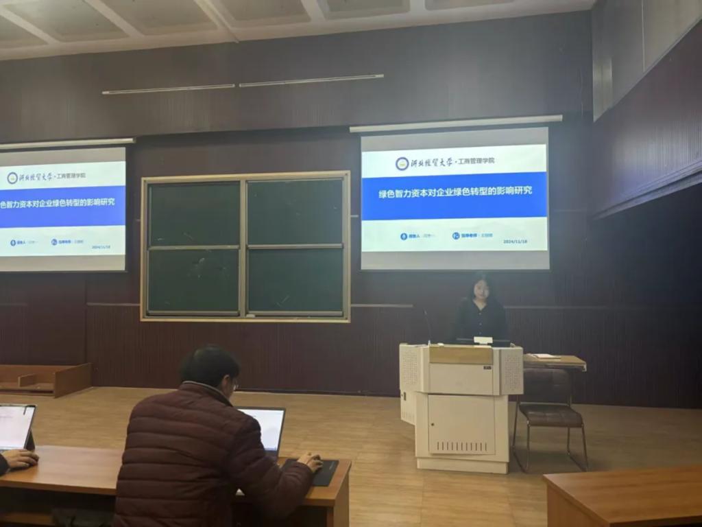 汇报人闫冬一以“绿色智力资本对企业绿色转型的影响研究”为题,基于资源基础理论、智力资本理论与动态能力理论,探究了绿色智力资本对企业绿色转型的影响和作用机制,并在此基础上研究技术创新能力与组织韧性对二者之间关系的影响以及政府环境规制强度与企业自身数字化水平对二者之间关系的调节作用,接着分析了行业性质、企业污染程度、ESG表现以及科技属性的差异化作用,为企业绿色化转型、高质量发展提供新思路、新方法,为实现“双碳”目标与经济目标提供启示。