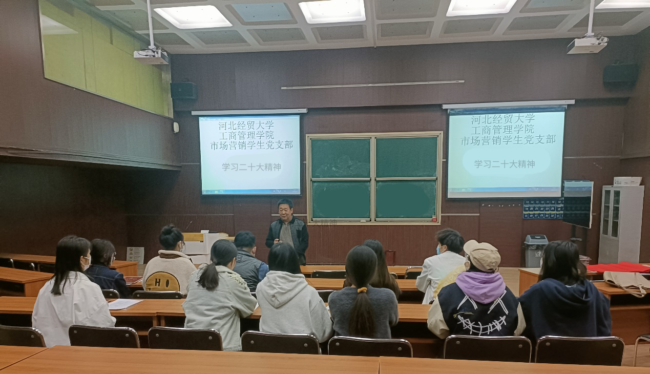 10月19日上午。市场营销员工党支部全体党员于MBA1教室开展以“学习党的二十大报告”为主题的党日活动。本次活动由伟德bv国际体育市场营销员工党支部书记柳学东老师主持。