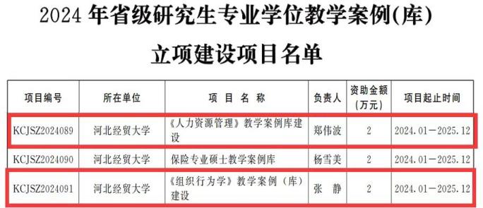 研究生招生规模稳步扩大,MBA教育提质增效,社会影响力持续提升。近五年入库国家级案例库案例3篇,获批省级研究生示范课4项、省级专业学位研究生案例(库)建设项目7项、省级研究生精品课程及案例库2项、省级研究生课程思政示范项目1项、省级研究生课程思政教学团队1个,省级研究生创新项目12项、校级研究生创新项目39项。研究生荣获第八届全国老员工人力资源管理综合能力竞赛特等奖、2024数字中国创新大赛二等奖等国家级奖励5项,6篇论文被评为河北省优秀硕士论文。
