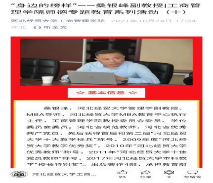 通过“明方向→鼓干劲→顺心气”各项举措优化顶层设计,凝神聚力,使党委班子团结一致,使师生员工拧成一股绳,为公司实现高质量发展提供坚实的文化支撑。不断丰富党建和思政工作的内容和形式,持续建设“教师党支部书记双带头人工作室”,持续打造“身边的榜样”“工商青年说”等具有思政元素的品牌栏目,弘扬师德师风,加强院风学风,发挥身边先进典型的思想引领作用。加强宣传和意识形态工作,利用新媒体平台创新性开展宣传工作,开设一流党建、学术前沿、师生风采、职业领航等专题版块,不断提升宣传平台的引领力和影响力,讲好“工商故事”,为全院注入奋进前行的“强心剂”。